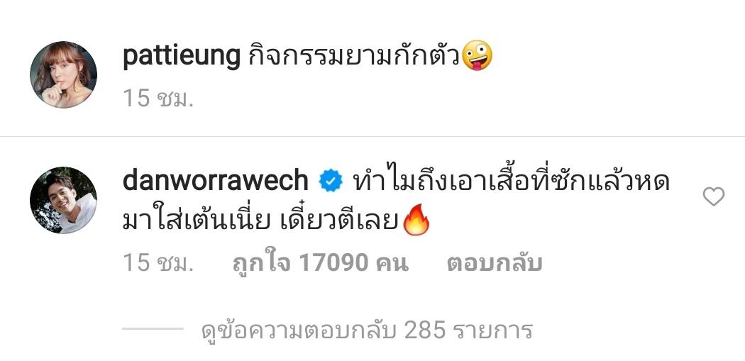 រឿងនេះក្រៅពីចំនួនអ្នកមើលកើនឡើងជិតរាប់លានហើយ នៅមានខាងសង្សាកំលោះរូបសង្ហា Dan Worawet ក៏បានចូលមក comment ព្រោះតែហួងហែងសង្សាស្រីខ្លួនឯងភ្លាមៗថា “ហេតុអ្វីបានជាពាក់អាវតូចខ្លីមកពាក់រាំចឹង តិចវ៉ៃលូវនិងហើយ”