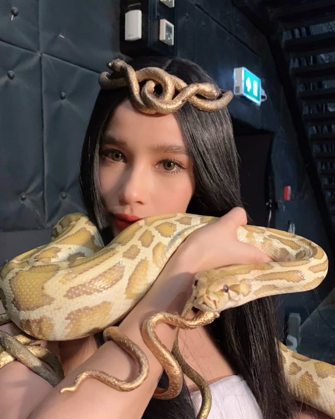 ក្រោយពេលឃើញបែបនេះ មហាជនជាច្រើនកាន់តែសរសើរតារាស្រីរូបនេះ មិនញញើតនិងសត្វពស់ហ៊ានថតយ៉ាងស្និតស្នាលបែបនេះ ហើយបើនិយាយពីរូបសម្រស់នាងក្នុងឈុតរាជនីពណ់វិញគឺស្រស់ស្អាតកប់តែម្ដង៕ តោះ! ចង់ជ្រាបច្បាស់ ទៅទស្សនារូបភាពខាងក្រោមនេះទាំងអស់គ្នា៖