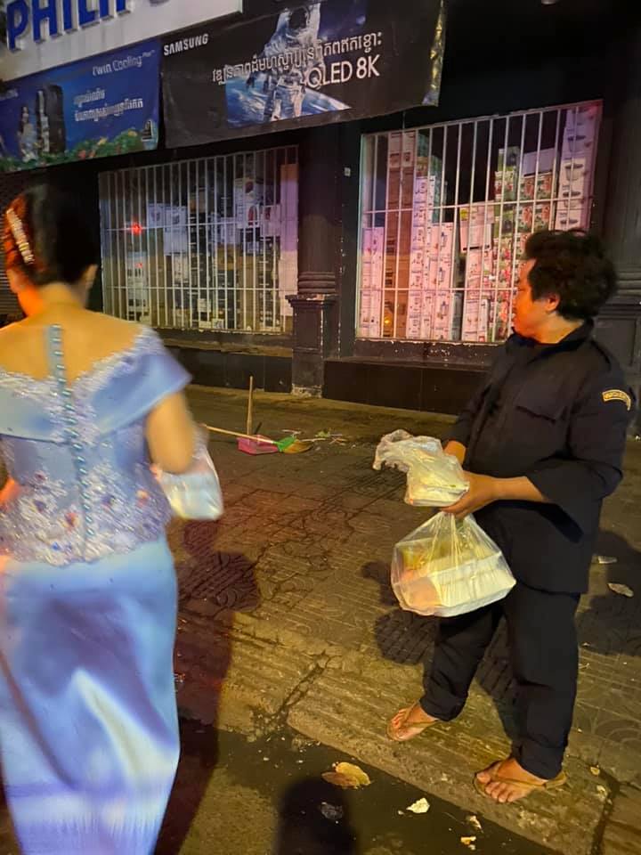 តែយ៉ាងណាមិញ ក្រោយពេលសល់តុមួយចំនួនបែបនេះ ក្រុមគ្រួសាររបស់តារាស្រីរូបនេះ បានយកម្ហូបទាំងអស់នោះ ទៅចែកជូនបងប្អូនអ្នករត់កង់បី ក៏ដូចជាអ្នកនៅតាមផ្លូវមួយចំនួនទាំងយប់ ទាំងទឹកមុខជ្រះថ្លាថែមទៀតផង។