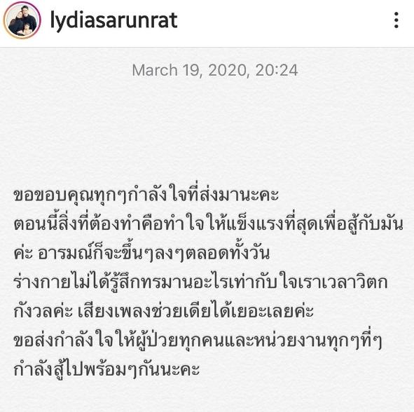 ជាក់ស្ដែងថ្មីៗនេះ Lydia បានបង្ហោះសារអរគុណនិងលើកទឹកចិត្តខ្លួនឯងពីក្នុងមន្ទីរពេទ្យថា៖