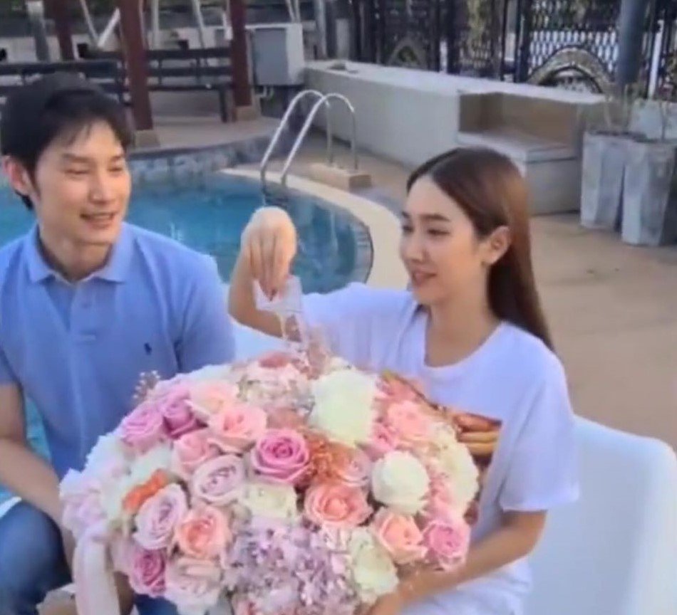 ជាក់ស្ដែងកាលពីម្សិលមិញនេះ គូស្នេហ៍នាងកាន់តែធ្វើឲ្យមហាជននិងហ្វេនៗជាច្រើនភ្ញាក់ផ្អើលថែមទៀត នៅពេលឃើញនាងបង្ហាញវីដេអូបង្ហាញពីសកម្មភាពគូស្នេហ៍បានលុតជង្គង់ជូនផ្កា សម្រាប់អបអរថ្ងៃកំណើតនាង មើលទៅពិតជារ៉ូមែនទិចខ្លាំងណាស់។