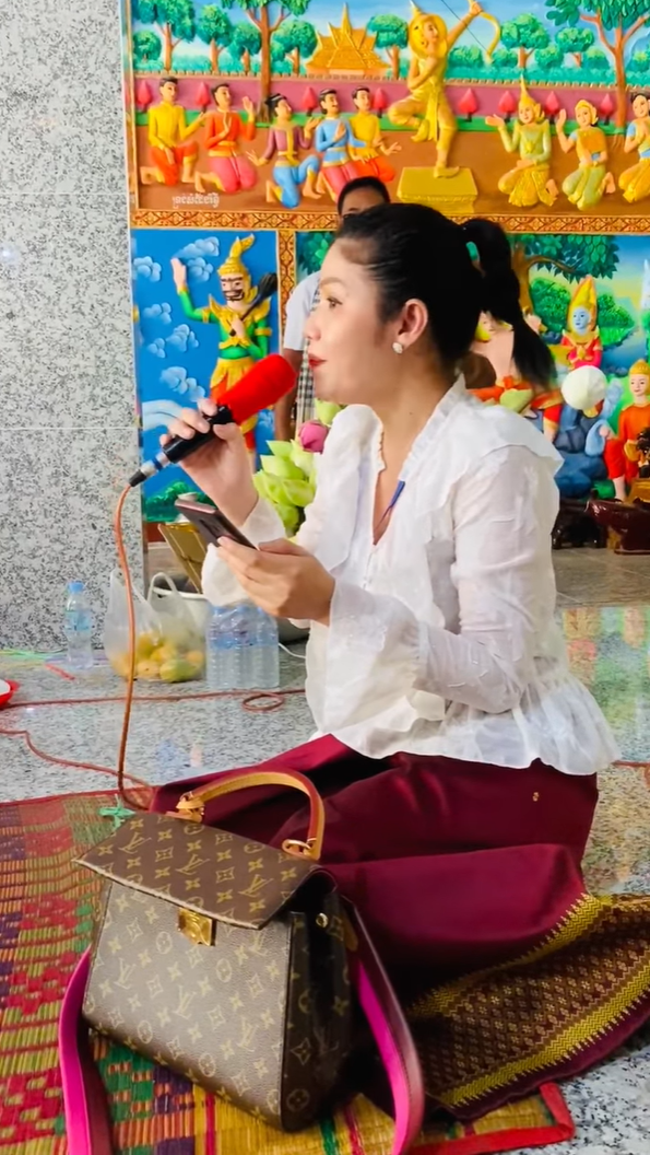 ក្នុងនោះផងដែរតារាចម្រៀងស្រីរូបនេះ ក៏បានរៀបរាប់សារយ៉ាងដូច្នេះដែរថា «លោកតាចៅអធិការគង់នៅវត្តភ្នំព្រះធាតុបានបិណ្ឌបាតនាងខ្ញុំនូវបទចម្រៀងមួយបទ នាងខ្ញុំក៏បានបកស្រាយប្រគេន ខុសឆ្គងអ្វីកុំប្រកាន់ណាបងប្អូន ច្រៀងភ្លាមៗក្នុងវិហារតែម្ដង …… សូមផ្ញើបទនេះស្ដាប់កំសាន្តមុនចូលគេង រាត្រីសួស្ដី !»៕