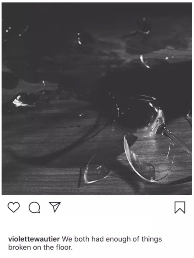 តែយ៉ាងណាមិញស្រាប់តែថ្មីៗនេះ ហ្វេនៗជាច្រើនកំពុងតែផ្ទុះការចាប់អារម្មណ៍ និងសង្ស័យថាស្នេហារវាងតារាទាំងពីរដួងនេះកំពុងតែជួបរឿងប្រេះឆា ក្រោយពេលឃើញតារាស្រី Violette បានបង្ហោះរូបភាពកែវបាក់បែក និងសរសេរ Caption បង្ហើបពីការបែកបាក់ន័យស្នេហាទៀតផង។