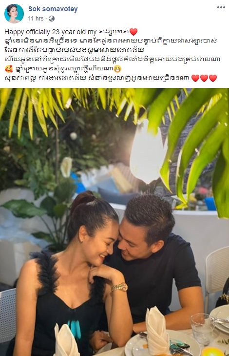 អីយ៉ា! ខួបកំណើតឆ្នាំនេះ សុខ​ សោម៉ាវត្តី បង្ហោះសារជូនពរគូស្នេហ៍យ៉ាងផ្អែមល្ហែមតែម្ដង!(មានរូបភាព)