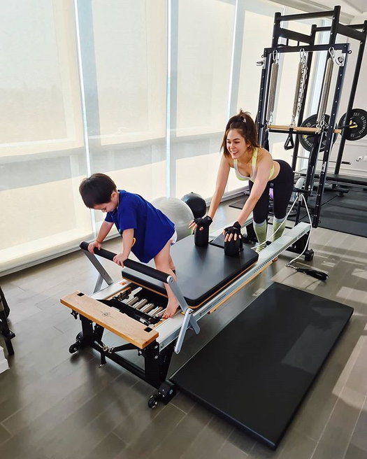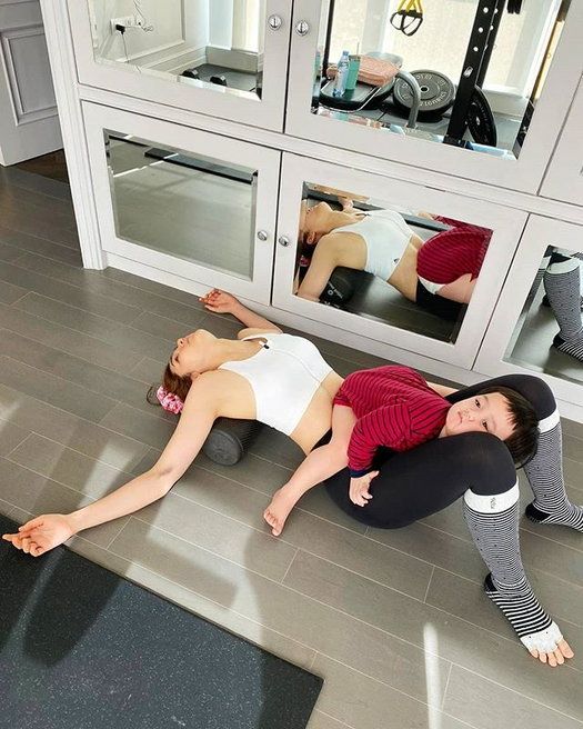 ចំពោះបរិយាកាសក្នុងផ្ទះពេលធ្វើលំហាត់ប្រាណវិញមើលទៅរស់រវើកព្រោះតែមានកូនៗរត់លេងជុំវិញដើម្បីផ្ដល់កម្លាំងចិត្តម៉ាក់ៗមើលទៅពិតជាមានសុភមង្គលណាស់ ហើយអ្នកម៉ាក់កូនពីរក៏បានផុសរូបគួឲ្យស្រលាញ់ៗនៅក្នុង Instagram ផងដែរ។