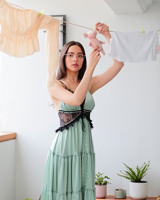 ទោះជាថតបែបនៅផ្ទះធម្មតាៗតែអាចនិយាយបានថាស្អាតលើសពីធម្មតាពិតមែន ជាក់ស្ដែងរូបថតថ្មីរបស់នាងពេលកំពុងហាលខោវអាវផុសព្រមជាមួយ caption ថា៖ “ថ្ងៃស្អែកខាងព្យាករណ៍អាកាសថាមានភ្លៀងធ្លាក់ចា and this ends our little trip!”។
