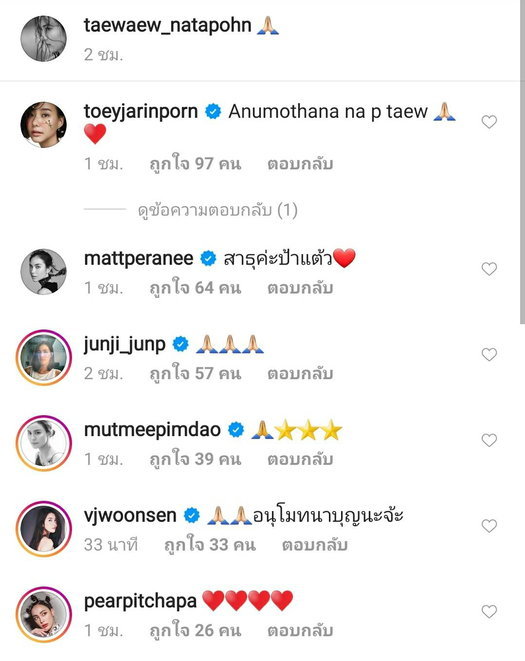 ចាត់ទុកថាជាវិធីដ៏ល្អសម្រាប់កញ្ញា Taew ទោះជាមានអ្នកតាមរិះគុណនិយាយមិនល្អចំពោះនាងយ៉ាងណាក៏ដោយ ក៏មិនអាចធ្វើឲ្យចិត្តនាងល្អក់កករបានពិតមែន។ នាងបានផុសរូបនៅក្នុង Instagram @taewaew_natapohn នៅក្នុងសម្លៀកបំពាក់ពណ៌សរក្សាសីល។
