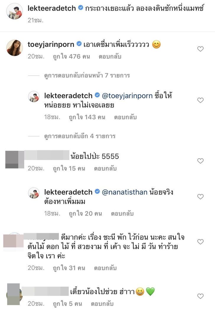 ដោយសារតែនៅលើបណ្ដាញសង្គមយើងនៅតែឃើញអ្នកទាំងពីរ comment លេងជាមួយគ្នា ជាក់ស្ដែងនៅពេលដែល Alex ទៅទិញដើមផ្កាមកដាំនៅផ្ទះព្រមជាមួយ caption ថា “ផើងនៅច្រើន ចឹងដាក់ដីចូលដាំមួយមើល” ហើយ Teoy ចូលទៅ comment ពីក្រោមរូបថា “យកផ្ដា Daisy មកដាក់ថែមលឿនឡើង”