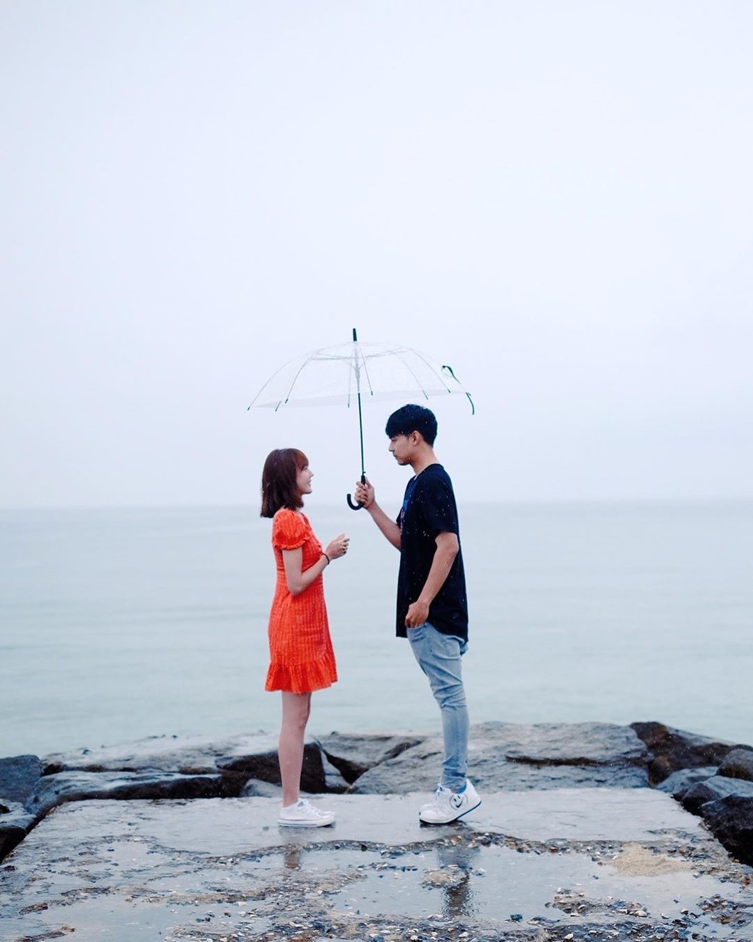 មើលទៅខាងស្រីក៏មិនព្រមចាញ់ដែរទើបជ្រើសរើសរូបដ៏ផ្អែមល្ហែមបំផុតផុសរួមជាមួយ caption ថា “សុំឆ័ត្របន្ទិចបានទេ មើលទៅដូចជាស្នេហាចូលពេញភ្នែកហើយ daddy”