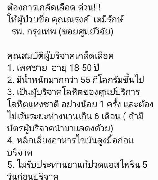 ក្នុងកំឡុងពេលដែលគ្រួសាររបស់កញ្ញា Taew កំពុងតែត្រូវការកម្លាំងចិត្តក្រោយពីបានប្រកាសស្នើរសុំការបរិច្ចាគប្លាកែតឈាមដើម្បីជួយដល់លោកបា៉ដែលជួបឧបត្តិវហេតុនិងវះកាត់អស់ចំនួន 5​ដង និងត្រូវរក្សាខ្លួននៅក្នុងបន្ទប់  CCU ហើយមិត្តភក្ដ័បងប្អូនរួមការងារបានជួយចែកចាយពត៌មាននេះយ៉ាងឆាប់រហ័សដើម្បីរកសប្បុរសជន។