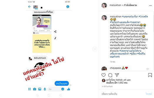 ធ្វើឲ្យអ្នកគាំទ្រខ្លះដែលបានតាមដានអ្នកម៉ាក់ Mai suhkon សប្បាយរីករាយព្រោះតែមុននិងនាងបានផុសពាក្យមួយឃ្លានៅក្នុង Instagram ឈ្មោះ @maisukhon ថា សុបិន្ដឃើញពស់កើតកូនបាន 3ក្បាល ទើបធ្វើឲ្យអ្នកគាំទ្រនាំគ្នាកាត់ជាលេខឆ្នោតហើយចាក់ត្រូវលេខពីរខ្ទង់ 53 រួចក៏បានផ្ញើរពាក្យអគុណដល់នាងដែលបានឲ្យលាភ។ ចំពោះអ្នកម៉ាក់ Mai បានចេញមុខមកថារឿងនេះនាងសូមមិនពាក់ព័ន្ធទេ មិនបានរុញច្រានឲ្យអ្នកងប់ងល់ទេ តែក៏ជួយត្រេកអរផង។