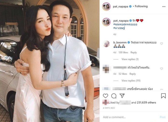 Patt napapa បានបើកចិត្តផុសរូបជាមួយលោកប៉ានៅលើបណ្ដាញសង្គម Instagram ផ្ទាល់ខ្លួនតែមានអ្នក Comment មិនបានគិតថា ជាប្ដីថ្មី តែក៏មានអ្នកគាំទ្រជាច្រើនផ្សេងទៀតបានជួយតបតជំនួសនាងផងដែរ