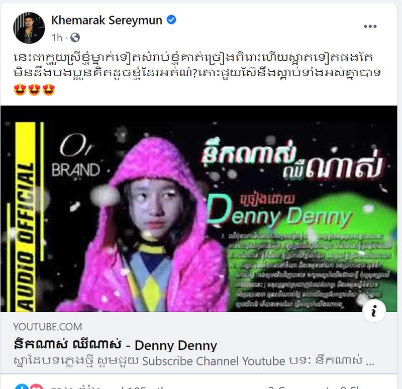 ដុងសិល្បៈមែន! ទើបនាំក្មួយស្រីម្នាក់សម្ដែង ពេលនេះ ខេមរៈ សិរីមន្ត បង្ហោះចម្រៀងក្មួយម្នាក់ទៀត!(មានវីដេអូ)