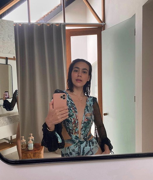 រូបដំបូងគឺ Kimberley នៅក្នុងអាងហែលទឹកជាមួយឈុតដ៏ស្រស់ស្អាត ប៉ុន្ដែពិសេសជាងនេះនោះគឺ Kimberley បានឈរថតរូប Selfie នៅមុខកញ្ចក់ក្នុងឈុតហែលទឹកបែបពេញៗ ហើយបើយើងពិនិត្យមើលនៅកញ្ចក់ខាងក្រោយបានឆ្លុះបង្ហាញឲ្យឃើញរូបខ្នងនិងជើងរបស់នាងស៊ិចស៊ីខ្លាំងណាស់ រហូតធ្វើឲ្យបង A ចូលមក comment ញ៉ោះនាងលេងថា​ “ហើយៗៗៗៗ ចង់កាត់វាំងនួននិងចោលមែនទែន”