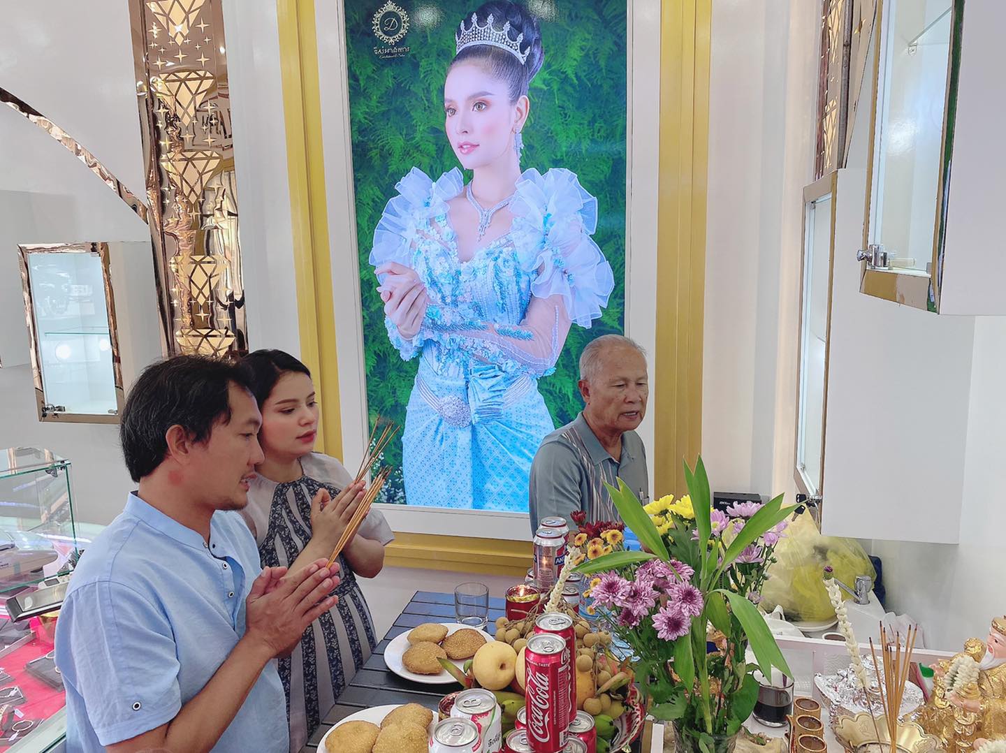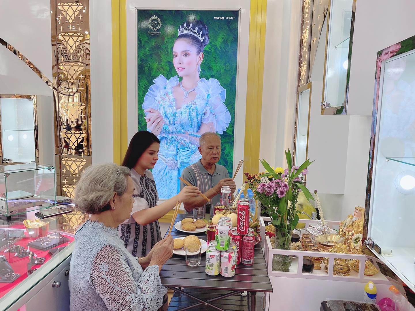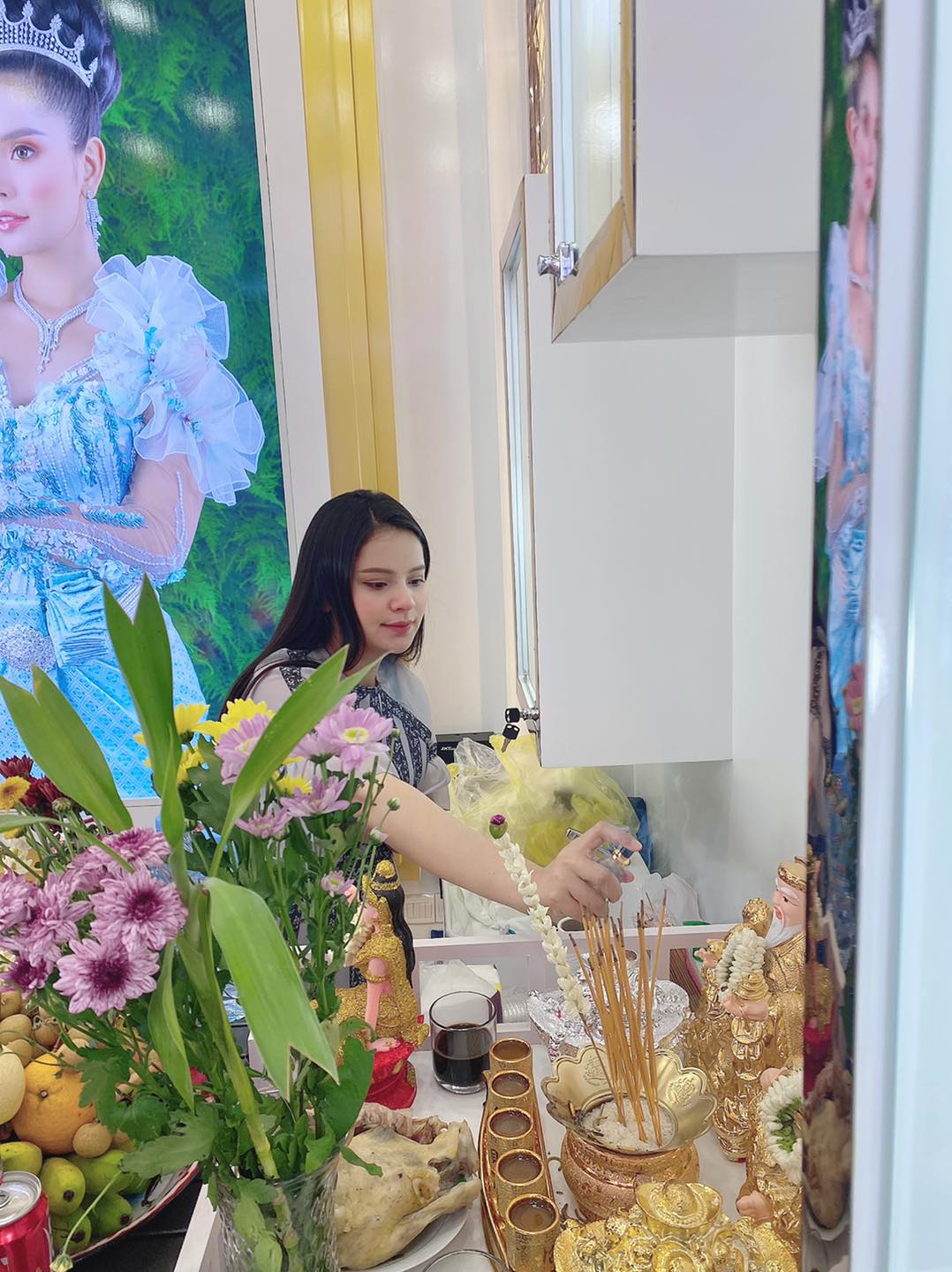 ជាក់ស្ដែងកាលពីប៉ុន្មានម៉ោងមុននេះ គ្រប់គ្នាបានឃើញអ្នកនាង បង្ហោះរូបភាពជាច្រើនសន្លឹក បង្ហាញពីសកម្មភាពអ្នកនាងនិងគ្រួសារ កំពុងតែសែន ដើម្បីទទួលយកលាភ សំណាងក្នុងថ្ងៃបើកហាងដំបូង ដែលមានឈ្មោះថា «អលង្ការ តូតា»។