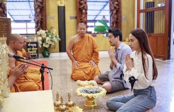 ជាក់ស្ដែងក្នុងពេលថ្មីៗនេះនាងក៏បានកាន់ដៃគូរសង្សាបណ្ដើរគ្នាទៅធ្វើបុណ្យកុសលព្រមទាំងមានការថតរូបជាគូខណៈពេលកំពុងតែទទួលពរព្រះសង្ឃប្រចាំនៅវត្ត ha Mai ខេត្ត Samut Sakhon ហើយខាងវត្តក៏បានផ្ញើររូបក្នុងបរិយាកាសដ៏ល្អព្រមជាមួយនិងឃ្លាថា៖
