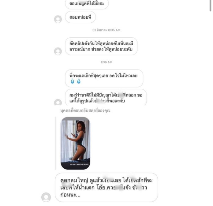 ជាក់ស្ដែងក៏មានរឿងចូលមកទៀតហើយ ក្រោយពីនាងបានផុសរូបបង្អួតគូទដ៏ស្រស់ស្អាតស្រាប់តែមានពួកមនុស្សប្រុសគម្រក់ឆាតមកនិយាយ អាក្រក់ៗ ហើយថែមទាំងមានផ្ញើររូបរបស់នាងត្រលប់មកវិញផងដែរ។ នាងបានបញ្ចាក់យ៉ាងច្បាស់ថាហេតុផលដែលផុសរូបបែបនេះ ទោះដឹងថាត្រូវជួបពួកបែបនេះក៏ដោយ