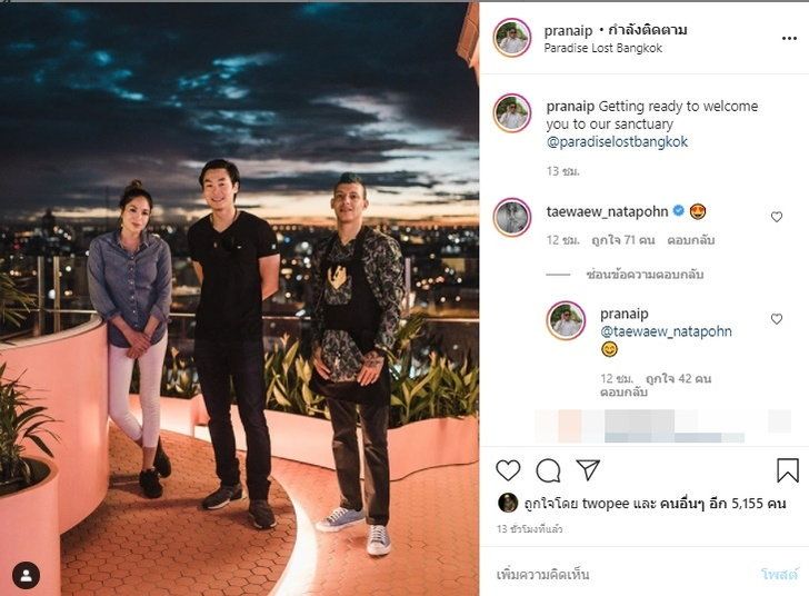 ហើយក្រៅពីមានផុសរូបនៅក្នុង story IG បែបផ្លែមល្ហែមហើយ ក៏ចាប់ផ្ដើមឃើញ Taew បញ្ចេញភាពផ្អែមល្ហែមខ្លាំងឡើង ដោយជាក់ស្ដែងឃើញ Taew ចូលទៅ comment លើរូបរបស់លោកហៃសូ Nai ហើយលោក Naiក៏បានតបត្រលប់មកវិញ