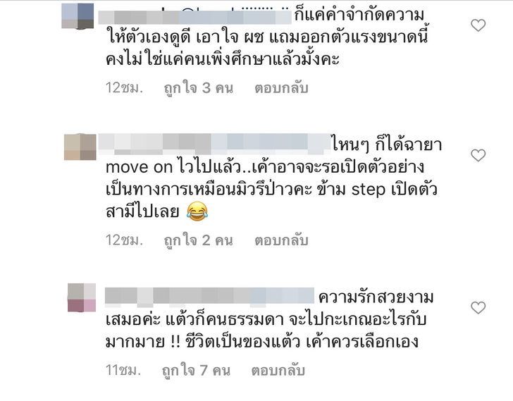 ប៉ុន្ដែរូបភាពផ្អែមល្ហែមនេះបានធ្វើឲ្យអ្នកគាំទ្រមួយចំនួនចូលទៅ comment ចូលរួមត្រេកអរចំពោះអ្នកទាំងពីរ ក៏នៅមានមួយចំនួនទៀតចូលទៅរិះគន់ដល់នាងផងដែរ ដូចជាអ្នកខ្លះក៏និយាយថា ធ្វើគ្រប់យ៉ាងដើម្បីអូនមែនហើយមើលទៅ ទោះជាមិនចូលចិត្តស៊ឺប្រាយប៉ុណ្ណា….តែបើថាម្នាក់នេះប្រញ៉ាប់ say yes តើមែនទេ., ទៅចុះទៅទាំងពីរ ឆាប់ឲ្យដល់ឋានសួគ៌ទៅ, សូមឲ្យសមបំណងជាមួយស្នេហាថ្មីលើកនេះណា ឧស្សាហ៍លះបង់អស់ពីខ្លួន ព្រមបោះបង់ចោលកេរ្ដិ៍ឈ្មោះ profile ល្អៗ ដែលខំសាងមកជាច្រើនឆ្នាំ + ព្រមនិយាយកុហក + ។ល។ ដើម្បីបុគ្គលម្នាក់នេះ ពិតជាអស្ចារ្យខ្លាំងណាស់, នេះគ្រាន់តែជាមិត្តដែលព្យាយាមសិក្សាមើលចិត្តគ្នាមែន ចុះបើលើពីនេះតើយ៉ាងម៉េចវិញ 5555, Taew ផ្លាស់ប្ដូរច្រើនណាស់ lifestyle ខុសពីមុនដូចជាមនុស្សថ្មីម្នាក់ទៀតចឹង Taew គួឲ្យស្រលាញ់ៗពីមុនបានបាត់ទៅព្រមជាមួយស្នេហា 14ឆ្នាំដែលចប់ទៅអស់ហើយមែនទេ មិនមានអ្នកណាអាចហាម Taew បានទេ រឿងនេះដឹងច្បាស់ ផ្លាស់ប្ដូរខុស តែបើបន្ធូដៃបានក៏បន្ធូទៅណាចា បញ្ចេញខ្លាំងពេកប្រយ័ត្នផ្លូវកោង ពីម្នាក់តែស្រលាញ់ Taew