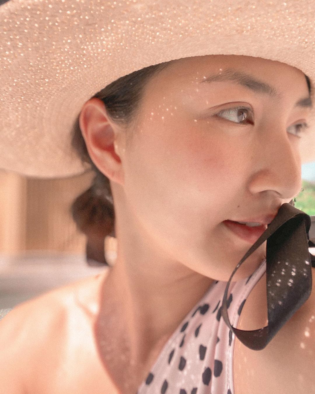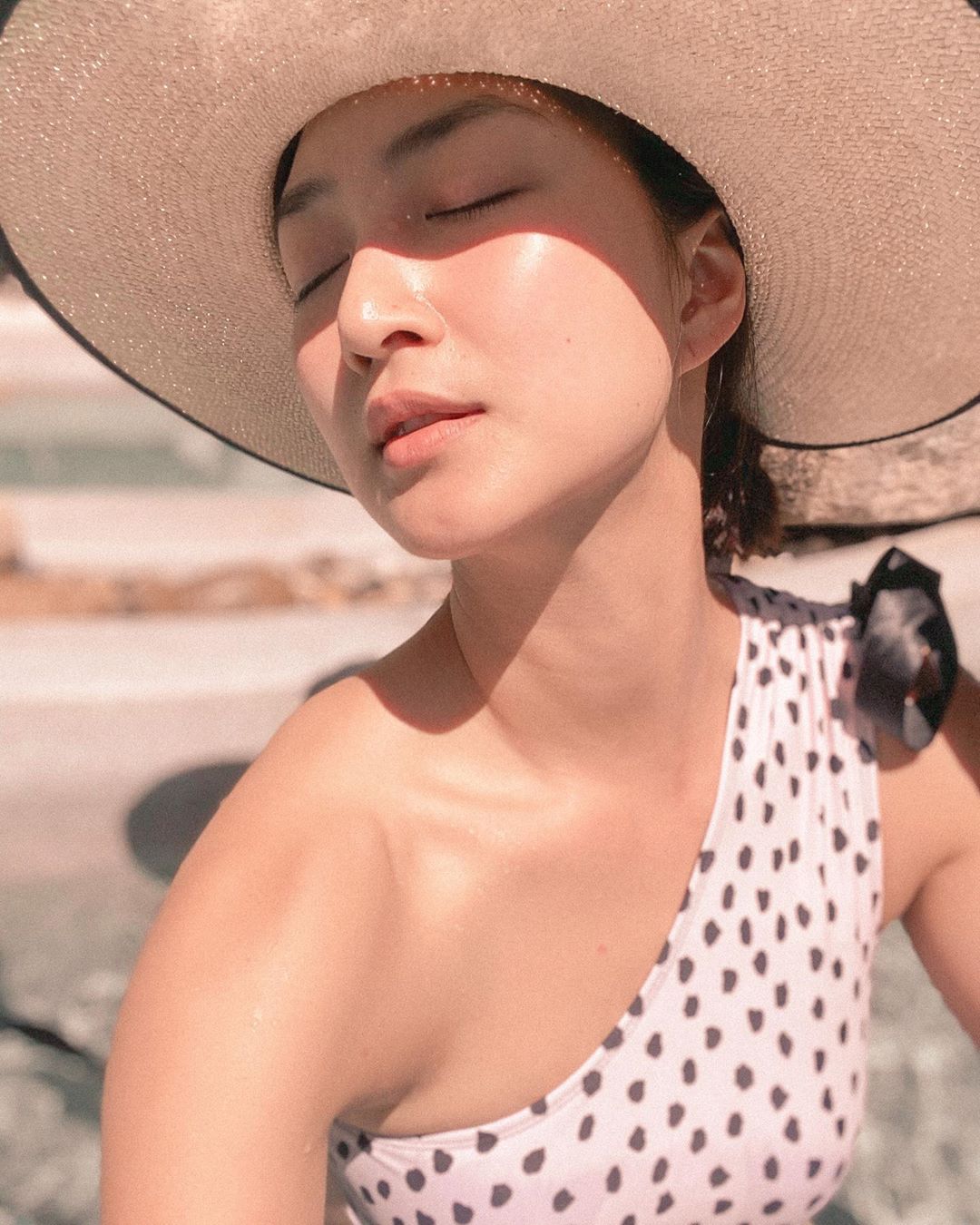 ដោយ Pancake ស្លៀកពាក់ឈុតហែលទឹកប្រកបទៅដោយពណ៌ទឹកក្រូចស្រស់ឆើតឆាយ មានទាំងដើមដូងទៀតផង ហើយមានបើកបង្ហាញសាច់ខ្នងដ៏ម៉ត់រលោង រាងខ្ពស់ជើងស្រលូន មិនបាច់ចាំបញ្ចេញច្រើនតែស្អាតស៊ិចស៊ីខ្លាំងណាស់ ឈរថតដូចជាកំពុងតែទទួលពន្លឺ្លព្រះអាទិត្យ ទោះបីជាពន្លឺព្រះអាទិត្យតែប្រហែលជាមិនក្ដៅដល់ Pancake ទេមើលទៅ