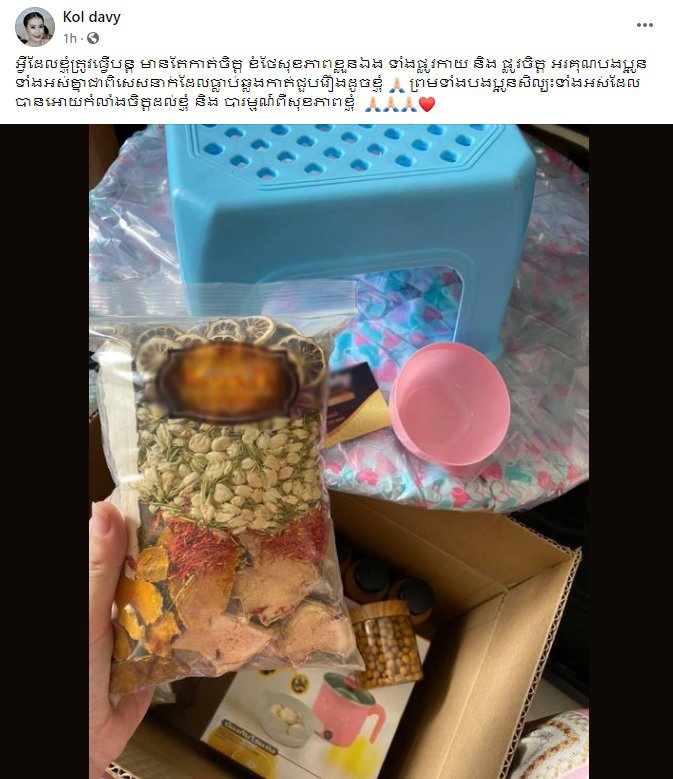 «អ្វីដែលខ្ញុំត្រូវធ្វើបន្ត មានតែកាត់ចិត្ត ខំថែសុខភាពខ្លួនឯង ទាំងផ្លូវកាយ និង ផ្លូវចិត្ត អរគុណបងប្អូនទាំងអស់គ្នាជាពិសេសនាក់ដែលធ្លាប់ឆ្លងកាត់ជួបរឿងដូចខ្ញុំ ព្រមទាំងបងប្អូនសិល្បៈទាំងអស់ដែលបានឲ្យកម្លាំងចិត្តដល់ខ្ញុំ និង បារម្ភពីសុខភាពខ្ញុំ»។