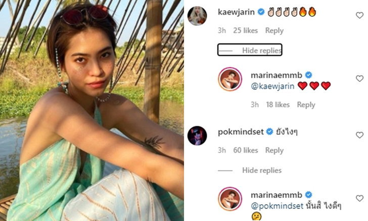 ជាក់ស្ដែង​ Marina បានចេញមកបកស្រាយដោយការផុសរូបខ្លួនឯងជាមួយនិងក្មួយស្រី Miya ព្រមជាមួយ caption ថា ” Miya ប្រាប់ច្បាស់ហើយណា” ហើយ Pok ដែលជាបងថ្លៃនាងចូលមក comment លើរូបថា​ “យ៉ាងម៉េចវិញ”