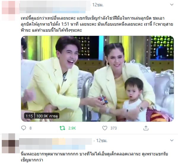 រងការវាយប្រហារគ្រាន់បើក្នុងករណីតារាសម្ដែងស្រី Chompoo Araya នាំកូនប្រុសភ្លោះខ្លួនទាំងពីរ Shayfa-Phayu ចូលក្នុងកម្មវិធីញឹកញ៉ាប់ ធ្វើឲ្យភ្ញៀវដែលបានអញ្ជើញមិនសូវទទួលបានការផ្ដោតអារម្មណ៍