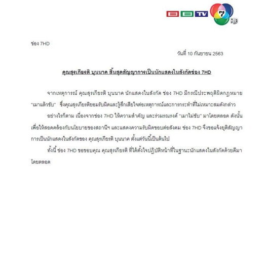 ក្រោយពីមានកណីតារាសម្ដែងប្រុសរូបសង្ហារលោក Pan Surakiat ដែលជាតារាសម្ដែងរបស់ប៉ុស្ដន៍លេខ 7 បានស្រវឹងហើយបើកបរបណ្ដាលឲ្យកើតមានគ្រោះថ្នាក់ចរាចរណ៍ព្រមទាំងបានជះផលឲ្យមានការរិះគន់ជាខ្លាំង