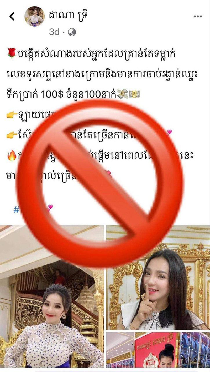 ជាមួយគ្នានោះ អ្នកស្រី ទ្រី ដាណា ក៏បានក្រើករំលឹកជាថ្មីម្តងទៀតថា សូមបងប្អូនប្រជាពលរដ្ឋដែលតែងតែស្រលាញ់ពេញចិត្តលើរូបអ្នកស្រី សូមមេត្តាឈប់ចាញ់បោក ការបង្ហោះអ្វីទាំងអស់ដែលផ្តល់រង្វាន់ផ្តល់លុយកាក ដោយគ្រាន់តែ Share រូបឬផេកអ្នកស្រីនោះ។ ព្រោះអ្នកស្រី ទ្រី ដាណា មិនដែលគំនិតឬគោលការណ៍បែបនេះឡើយ។ សូមឈប់ចាញ់បោកបន្តទៀត។