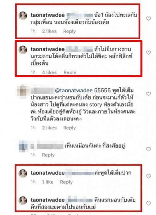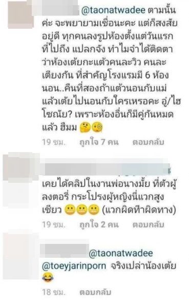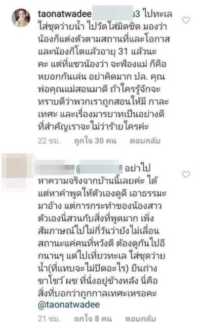 ជាក់ស្ដែងក្រុម Furby មានតារាស្រីទាំង 5 ដែលបានរួមគ្នាដឹងដៃគូស្នេហ៍ទៅលេងសមុទ្រ លើកលែងតែ Toey តែដំណើរកំសាន្ដលើកនេះ Taew មានការចាប់អារម្មណ៍ខ្លាំងជាងមិត្តភក័្ដក្នុងក្រុមហើយក៏មានការរិះគន់ខ្លាំងផងដែរ។ ដោយការរិះគន់ថ្មីបានលើកជាសំនួរឡើងថាតើ Taew ទៅដើរលេងសមុទ្រដេកជាមួយអ្នកណាគេ ព្រមទាំងរឿងឈរខ្វែងជើងផងដែរ រឿងនេះបានធ្វើឲ្យបងស្រី Taew អស់ការអត់ទ្រាំចូលមក comment តបយ៉ាងរហ័សថា