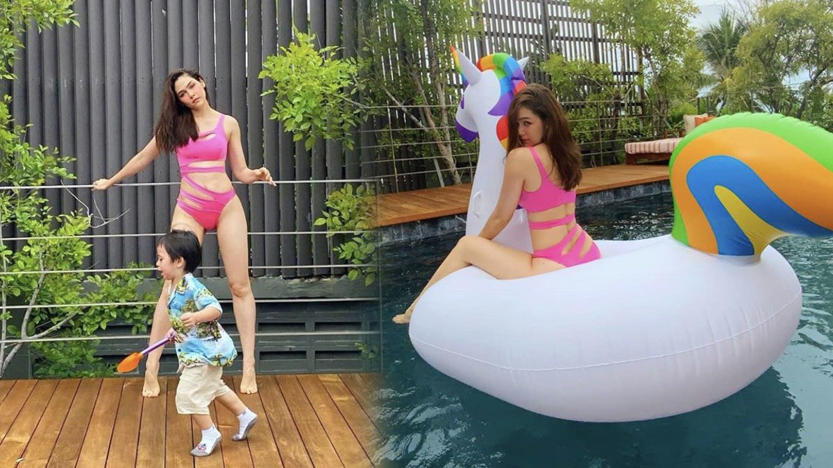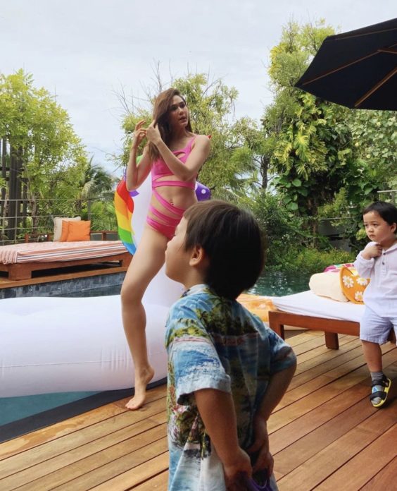 ជាក់ស្ដែង Chompoo បានផុសរូបភាពដ៏ស៊ិចស៊ី កំឡុងពេលលេងទឹកជាមួយនិង Shayfa-Phayu ជាមួយនិងឈុតហែលទឹកដែលមើលឃើញរាងអ្នកម៉ាក់ខ្ពស់ស្រលូន ពណ៌ផ្កាឈូក ពិតជាស្អាតខ្លាំងណាស់តាមស្ទាយរបស់អ្នកម៉ាក់សាកសមនិង hashtags #ម៉ាក់ថាម៉ាក់នៅបាន រឿងនេះស្វាមីដែលបានទៅជាមួយនិងថាយ៉ាងម៉េចវិញ ត្រូវចាំអ្នកម៉ាក់ Chompoo ចេញមកនិយាយខ្លួនឯងហើយចា