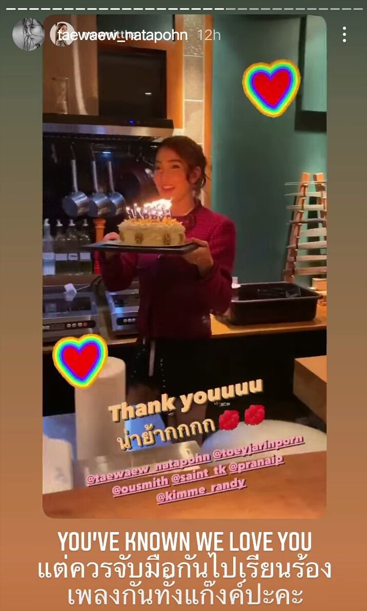 ជាក់ស្ដែងដូចជាថ្មីៗនេះ ត្រូវនិងថ្ងៃកំណើត Mew គ្រប់គ្នាក៏ឃើញវត្តមាន Taew និង Matt ទៅចូលរួមផងដែរ តែលើកនេះ អ្នកទាំងពីរបានដឹកដៃគូស្នេហ៍របស់ខ្លួន ទៅបង្ហាញភាពស្និតស្នាលនៅក្នុងកម្មវិធីនោះ ធ្វើឲ្យហ្វេនៗឃើញហើយរំភើបចិត្ត និងចាប់អារម្មណ៍ខ្លាំងគ្រប់ៗគ្នា។