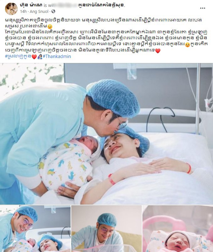 យ៉ាងណាមិញ ក្រោយពេលសម្រាលកូនបានជិតមួយខែ ស្រាប់តែថ្មីៗនេះ ភរិយាពិធីកររូបនេះ បានបង្ហោះរូបភាព ក៏ដូចជាសាររៀបរាប់អំពីរឿងគ្រួសារយ៉ាងចាក់ដោតថា៖
