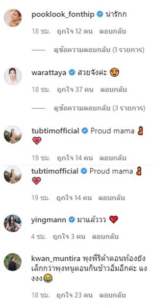 Aff នៅប្រាប់ថា , “អ្នកម៉ាក់ស្អាតណាស់”Jui Rataya ថា “ស្អាតខ្លាំងណាស់”, Pookluk ថា “គួឲ្យស្រលាញ់” , Mannarumas ថា “មកហើយៗៗ” ជាដើម