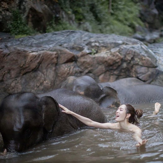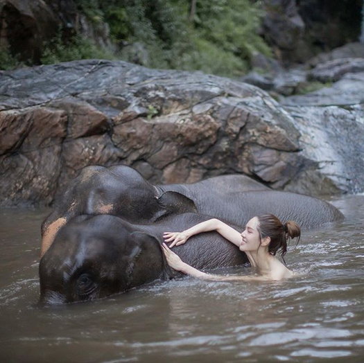 ហើយក៏នៅមានវគ្គ Grace ចុះទៅងូចទឹកនិងដុះខ្លួនឲ្យដំរីទៀត បានទាំងរៀនពីវិធីងូចទឹកឲ្យដំរីត្រូវតាមក្បួនខ្នាត មិនត្រឹមតែប៉ុណ្ណឹងទេនៅធ្វើឲ្យអ្នកបណ្ដាញសង្គមចាប់អារម្មណ៍ទៅលើដងខ្លួនដ៏សែនសខ្ចីរបស់នាងយ៉ាងខ្លាំង ហើយនាងបានសរសេរឃ្លាអមប្រកបជាមួយរូបថា “Enjoy this precious time with Mae Kwan and her son. ហើយយើងក៏ងូចទឹកជាមួយគ្នា 55 #ឪកាសបែបនេះមិនមែនមានញឹកញាប់ទេ”