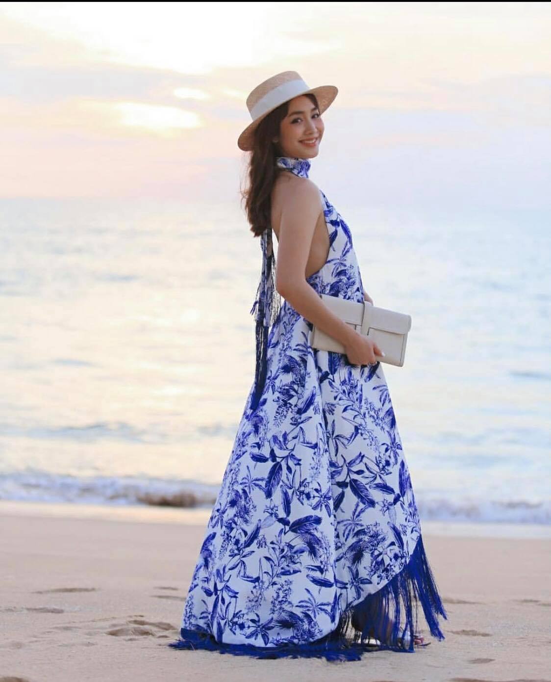 ជាក់ស្ដែងដូចជាថ្មីៗនេះ នាងបានបង្ហោះរូបភាពក្នុងដំណើរកំសាន្តទៅកាន់តំបន់មាត់សមុទ្រ ជាមួយឈឈឺឈុតរ៉ូបវាលខ្នង ពណ៌សលាយម៉ូតពណ៌ទឹកប៊ិចយ៉ាងស្រស់ស្អាត ដែលមើលទៅពិតជាលេងធ្លោរខ្លាំងណាស់។