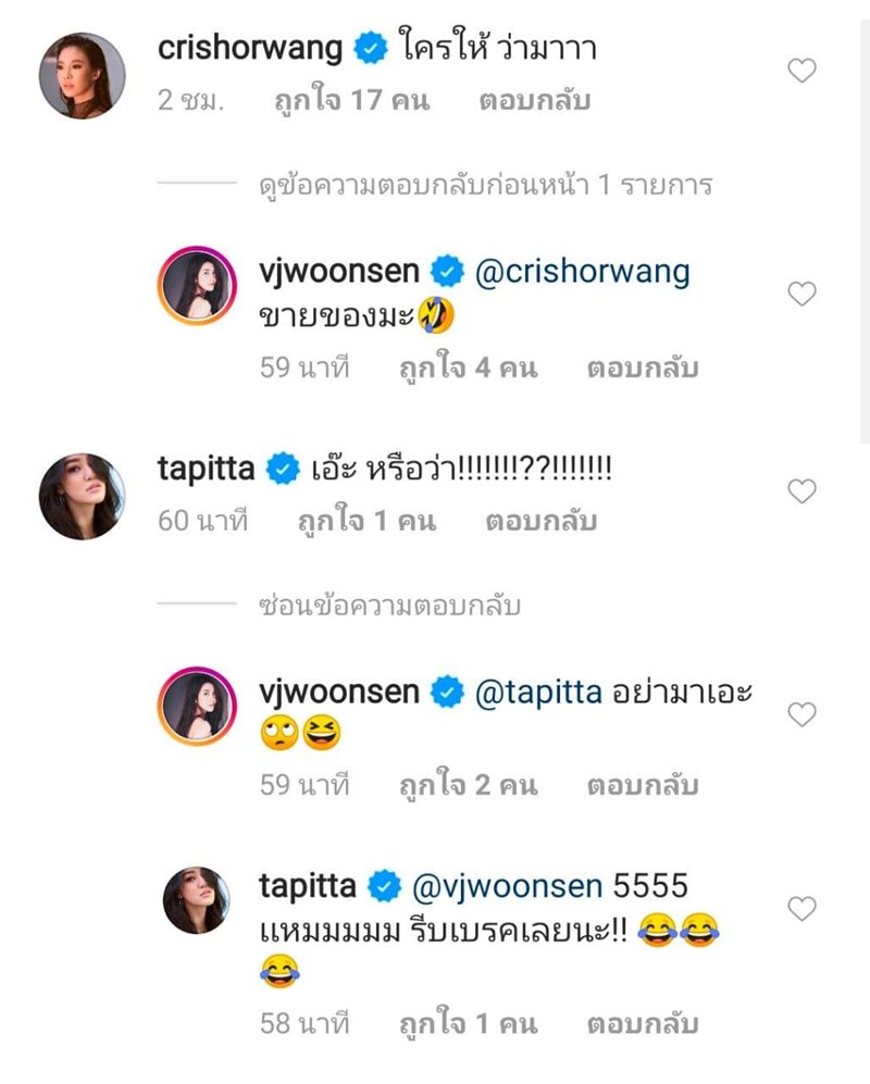 ដោយក្រោយពីនាងបានផុសនិងរួចមក មិនយូរប៉ុន្មានក៏មានមិត្តភ័ក្ដពីរនាក់ចូលមក comment សួរដេញដោលថា “អ្នកណាឲ្យមកនិង” ហើយម្នាក់ទៀតក៏សួរថា “ឬមួយ!!!!!!!?!!!!!” កាន់តែធ្វើឲ្យអ្នកគាំទ្ររឹតតែសង្ស័យឡើង