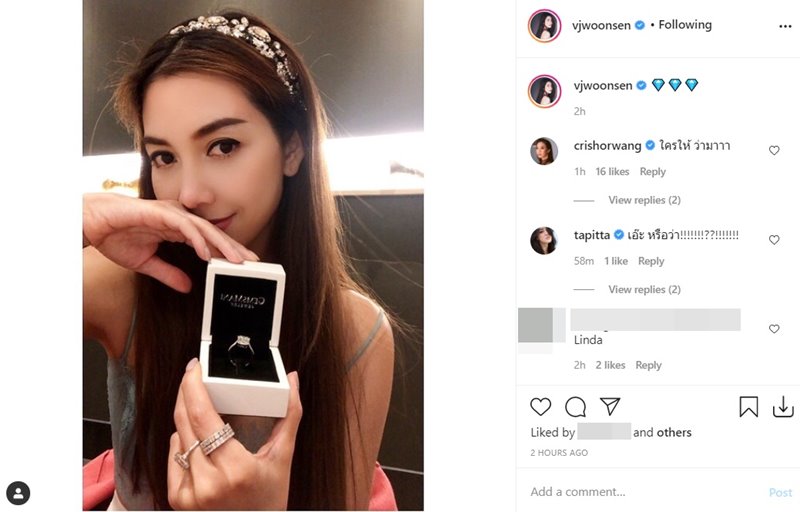ធ្វើឲ្យផ្អើលទាំងមិត្តភ័ក្ដ និងហ្វេនៗអ្នកគាំទ្រអស់មិនតិចទេសម្រាប់កញ្ញា Wonseen នៅពេលថ្មីៗនេះ (12 វិច្ឆិកា 2020) បានចេញមកផុសរូបគូជាមួយនិងចិញ្ចៀនពេជ្រគ្រាប់ដ៏ធំនៅក្នុង IG ធ្វើឲ្យម្នាក់ៗដែលបានអូសឃើញកើតការសង្ស័យថានិងមានដំណឹងល្អឬយ៉ាងណា មានកំលោះថ្មីណាឲ្យមកទេដឹង