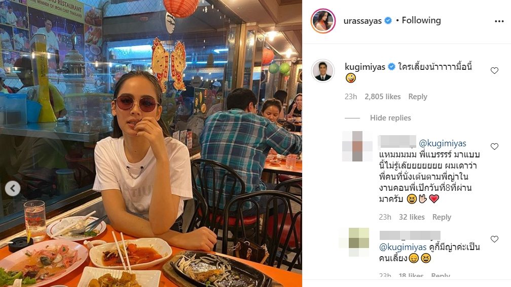 តែអ្វីដែរធ្វើឲ្យគ្រប់គ្នាត្រូវបើកភ្នែកធំ និងត្រូវត្រលប់មកមើលម្ដងទៀត ជាមួយនិងរូបដែលខាងស្រីទៅញុំាអាហារនៅហាងមួយកន្លែង សាកមើលលេងៗដូចជាគ្មានអ្វីទេ តែមកកើតការចាប់អារម្មណ៍នៅត្រង់ comment របស់បុរសសំខាន់បង Barry Nadech ដែលបានចូលទៅសួរថា “អ្នកណាប៉ាវណាលើកនេះ” ព្រមទាំងរូប Emoji ឆ្អែត