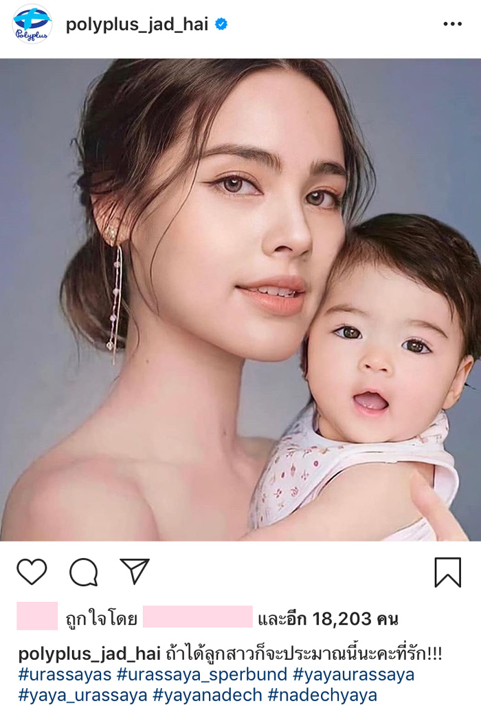 ជាក់ស្ដែង (12 វិច្ឆិកា 2020) នៅក្នុង IG របស់ Polyplus រៀបចំភាពទន់ភ្លន់ជូនដល់ហ្វេនៗ ដោយរូបរបស់កញ្ញា Yaya ជាមួយនិងអូន Demi កូនស្រីរបស់ Lydia Sarunrat អាចនិយាយបានថារូបភាពមួយនេះស្អាតខ្លាំងណាស់ ហើយអូន Demi ក៏គួឲ្យស្រលាញ់ ភ្នែកភ្លឺថ្លាផ្អែមល្ហែមសាកសមនិងទាយាទ រូបនេះមកព្រមជាមួយឃ្លាស្រមើលស្រម៉ៃកាន់តែឆ្ងាយថា “ប្រសិនបើបានកូនស្រីក៏ប្រមាណៗនេះណាចាបងសម្លាញ់!!!” ជាការបញ្ចូលសម្លេងជំនួសនិងសំដៅថា នាងកំពុងតែប្រាប់ដល់សង្សាជាទីស្រលាញ់