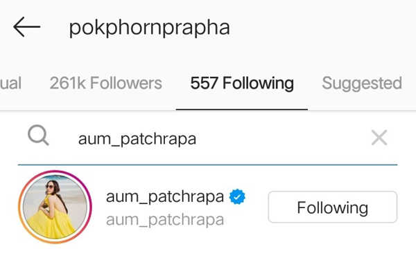 ជាក់ស្ដែង (16 វិច្ឆិកា 2020) ពេលចូលទៅមើលក្នុង Instagram របស់ Aum Patcharapa ក៏ឃើញថាសាម៉ីខ្លួនបាន Unfollow ហៃសូ Pok ទៅហើយខណៈដែលខាងប្រុសនៅតែ follow ដដែរ ទើបមានការសង្ស័យថាទាំងពីរនាក់អាចជាខឹងអន់ចិត្តគ្នាទេដឹង ព្រោះតែរឿងនេះក៏ធ្លាប់កើតមានកាលពីឆ្នាំមុនដែរ មុននិងទាំងពីរនាក់ត្រលប់មកទាក់ទងគ្នាម្ដងទៀត