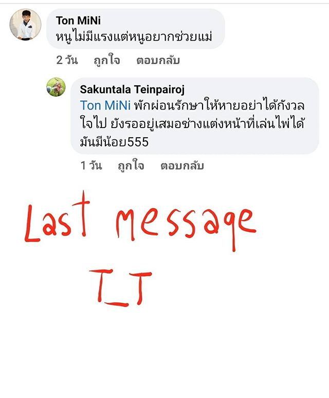 ធ្វើឲ្យ DJ Tonhom ខូចចិត្តហើយនិងភ្ញាក់ផ្អើលមិនគួឲ្យជឿ នៅពេលដឹងថាការចាកចេញរបស់ជាងតែងមុខដែលស្និតបំផុតឈ្មោះ Ton ដែលទើបនិងបាត់បង់ជីវិតដោយគ្មានពាក្យលាសូម្បីតែមួយម៉ាត់ ដោយ  DJ Tonhom បានផុសពីសារចុងក្រោយដែល Ton បាននិយាយជាមួយនាងតាមរយៈ Instagram