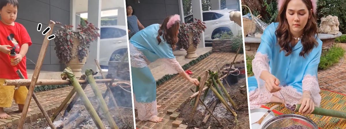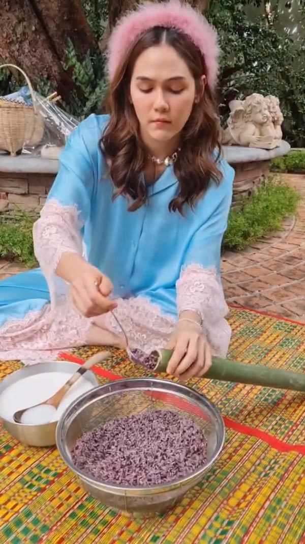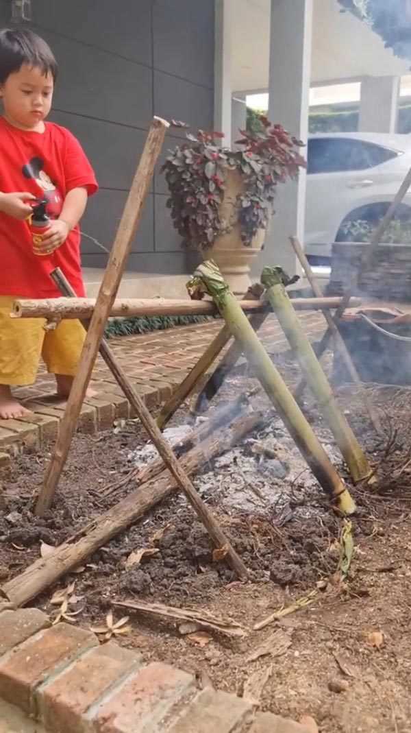 នៅក្នុងវីឌីអូនេះក៏ឃើញថា Chompoo ហើយនិងអ្នកម៉ាក់កំពុងតែធ្វើម្ហូបដោយមានសួនមកប្រកបជាមួយ វត្ថុផ្សេងៗ ក្នុងការធ្វើនំកាឡានច្រកក្នុងបំពងឬស្សីយ៉ាងប្រយ័ត្នប្រយែង ដូចជាអ្នកអាជីពចឹង មុននិងអ្នកម៉ាក់ទៅដុតភ្លើងដែលត្រៀមទុកយ៉ាងល្អមើលមួយភ្លែតស្មានតែជាកន្លែងដុតនំលក់ហើយតើ