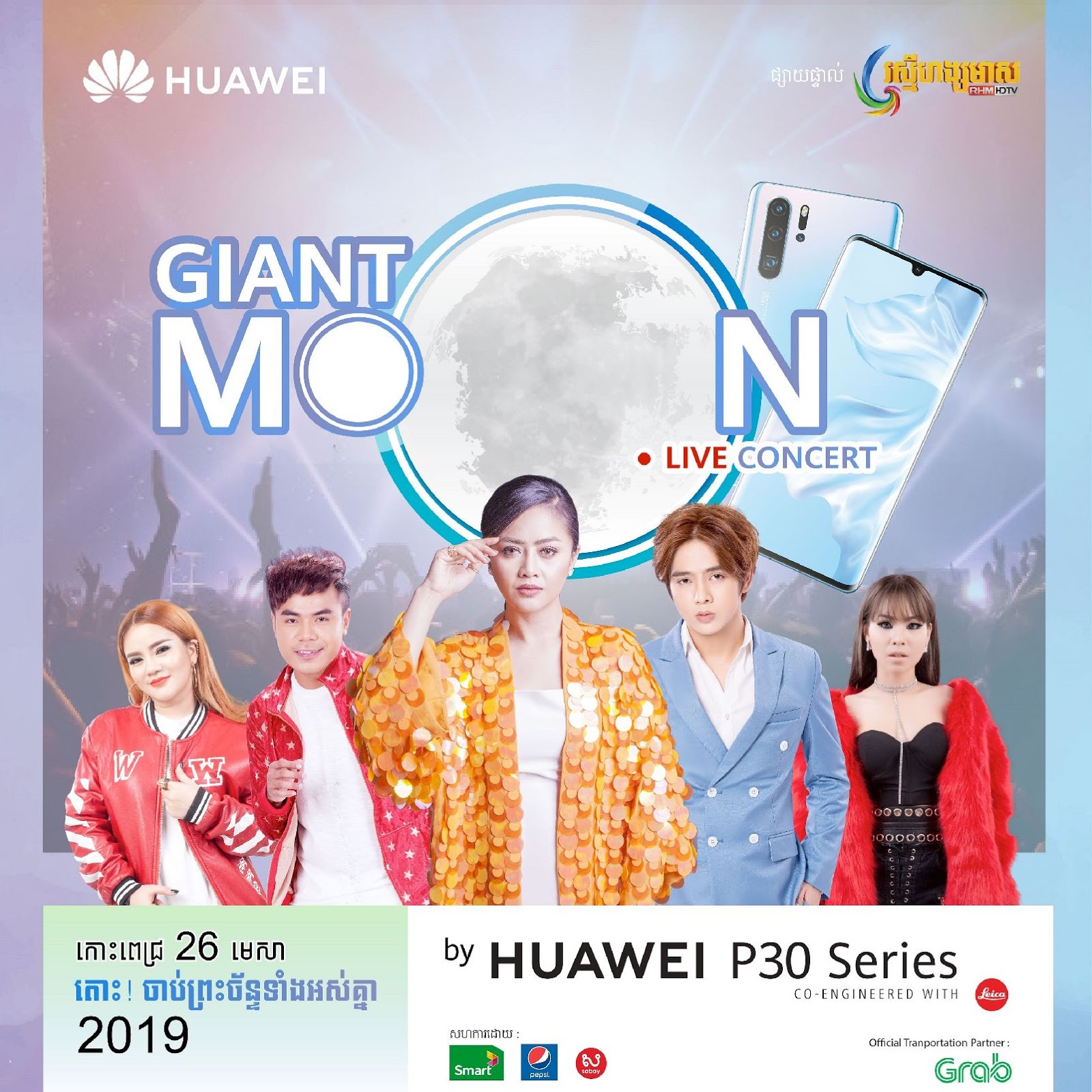 ចូលរួមទស្សនាដោយសេរី សប្បាយៗ រាំច្រៀង​ លេងហ្គេមយករង្វាន់ជាច្រើនសន្ធឹកសន្ធាប់ និងតេស្តកំពូលស្មាតហ្វូន Huawei សេរ៊ីថ្មី​ត្រកូល P30 គឺ P30 Lite, P30 និង P30 Pro ដើម្បីហ្សូមដល់ឋានព្រះច័ន្ទ នៅមុខសាលមហោស្រពកោះពេជ្រ នៅថ្ងៃ 26 មេសា ចាប់ពីម៉ោង 5 ល្ងាចតទៅ​ ក៏មានការផ្សាយផ្ទាល់ពិសេសលើកញ្ចក់ទូរទស្សន៍ រស្មីហង្សមាស HDTV និង Facebook Page Huawei Mobile ចាប់ពីម៉ោង 7:30 យប់ផងដែរ! កម្មវិធីនេះ ក៏មានការចូលរួមឧបត្ថម្ភដោយក្រុមហ៊ុន Smart, Pepsi, Sabay និង Grab​ ។