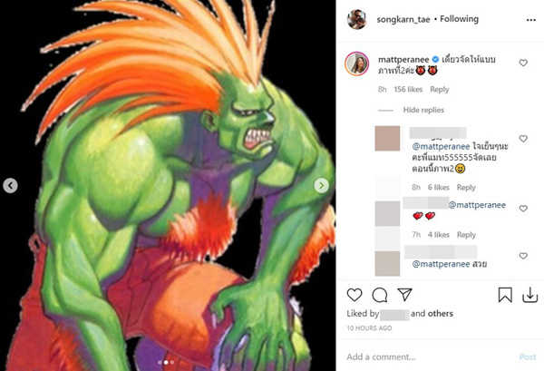 តែមើលទៅដូចជាមានម្នាក់តែមើលឃើញខុសពីនិង នោះគឺសង្សារបស់់នាង Songkran ដែលបានផុសរូបម្ចាស់ក្សត្រី Ariel ក្នុង IG តែពេលអូសទៅមើលរូបបន្ទាប់ក្លាយទៅជា Blanca តួកំណាចក្នុងហ្គេម Street Fighter ហើយតាមមកដោយរូបរបស់ Matt ក្នុងស្ទាយសក់ថ្មី ព្រមទាំងមានឃ្លាអមថា “អ្វីដែលអ្នកផ្សេងគិត អ្វីដែលខ្ញុំជួប បើសិនជាបាត់ខ្ញុំពី IG លើសពី2 ថ្ងៃទៅផ្ញើរជួយប្រាប់ខាងអ្នកផ្ទះរបស់ខ្ញុំផង”
