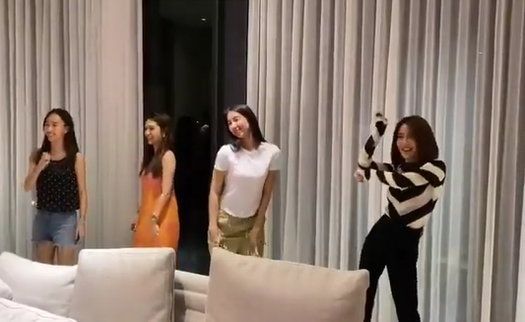 ក្រុមស្រីស្អាត Teaw-Toey-Mint-Mew ចាប់ដៃគ្នារាំក្រលែងមិនសំចៃដៃដល់ថ្នាក់ខាងសង្សាអង្គុយមើលបណ្ដើរ….! មានវីឌីអូ