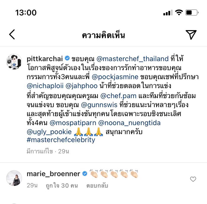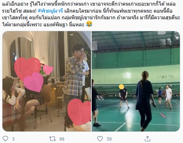ជាក់ស្ដែងនៅក្នុងលោកអនឡាយផ្សេងៗក៏មានហ្វេនៗរបស់ Marie និង Pitchai ចេញមកនិយាយរឿងនេះជាច្រើន ទាំងពេញចិត្តទាំងគាំទ្រអ្នកទាំងពីរខ្លាំងណាស់ ហើយក៏មិនគិតថាជាគូនេះដែរ គ្រប់គ្នាក៏សម្ដែងភាពរីករាយបើគូនេះស្រលាញ់គ្នាមែន ហើយអ្វីដែលពេញចិត្តបំផុតក៏ឃើញអ្នកគាំទ្រនាំគ្នាជីកកកាយរករូបភាពស្និតស្នាលរបស់អ្នកទាំងពីរយកមកបញ្ជាក់ ជាមួយរូបភាពដែលកញ្ញា Marie ទៅចូលរួមញាុំបាយជាមួយគ្នា កំលោះ Pitchai និងក្រុមមិត្តភ័ក្ដនៅថ្ងៃដែលមានការប្រកាសលទ្ធផលអ្នកឈ្នះកម្មវិធី MasterChef Celebrity Thailand ដែលអ្នកកំលោះ Pitch ជាអ្នកឈ្នះ