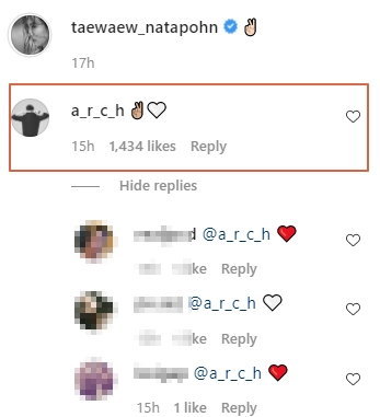 Ton ash ចូលទៅ comment ផ្ដល់កំលាំងចិត្តឲ្យអតិតអ្នកធ្លាប់ជាសង្សា  Taew Natapohn រយៈពេលឃុំខ្លួន 14 ថ្ងៃ អាចនិយាយបានថាមិត្តភាពរបស់អ្នកទាំងពីរនៅតែរឹងមុំា