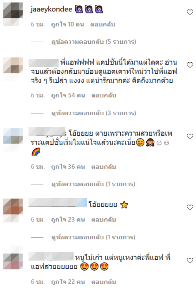 ធ្វើឲ្យអ្នកគាំទ្រនាំគ្នាភ្ញាក់ភ្នែកភ្ញាក់អារម្មណ៍ជាខ្លាំង នៅពេលដែលអ្នកម៉ាក់រូបស្រស់យ៉ាង Aff-Taksaorn បានចេញមកផុសរូបភាពដ៏ស្រស់ស្អាតពោរពេញទៅដោយគ្រប់រសជាតិផ្អែមជូរហិល ជាមួយនិងឈុតប៉ោងស្មាខ្លីក្រោម អង្គុយផុសស្ទាយនៅលើជណ្ដើរ បង្ហាញជើងដ៏ស្រលូនស ខ្ចីបែបស៊ិចស៊ីតិចៗដែលមកព្រមជាមួយនិងឃ្លាដ៏មានន័យ