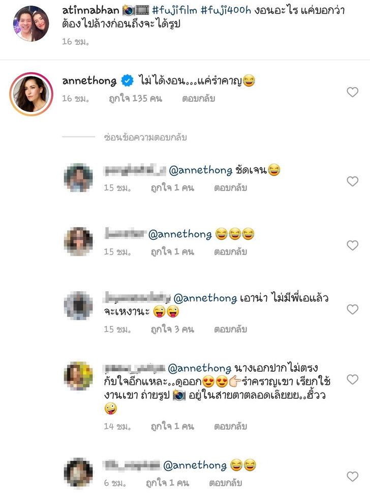 បន្ទាប់ពី A-tinpan ផុសសារខាងលើចេញទៅមិនបានយូរប៉ុន្មានផង ក៏មានអ្នកគាទ្រចូលទៅ comment សម្ដែងការយល់ចិត្តយល់ថ្លើមយ៉ាងជ្រាលជ្រៅ មុននិងម្ចាស់ចិត្តតួពិតយ៉ាង Ann Thongprasom ចូលទៅ comment ឆ្លើយនៅខាងក្រោមផុសថា “មិនបាន ង ទេ…គ្រាន់តែរំខាន់”